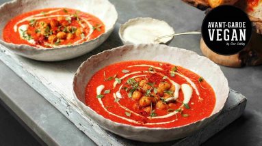 RED PEPPER & TOMATO SOUP, CRÈME FRAÎCHE | @avantgardevegan by Gaz Oakley